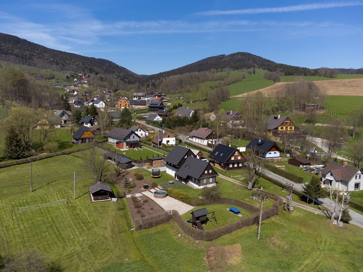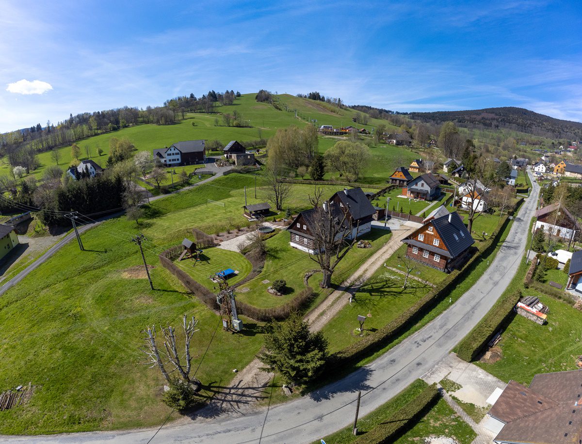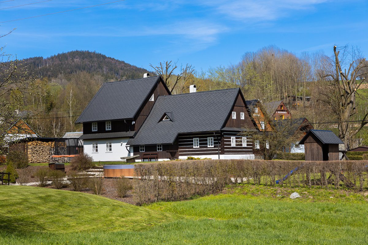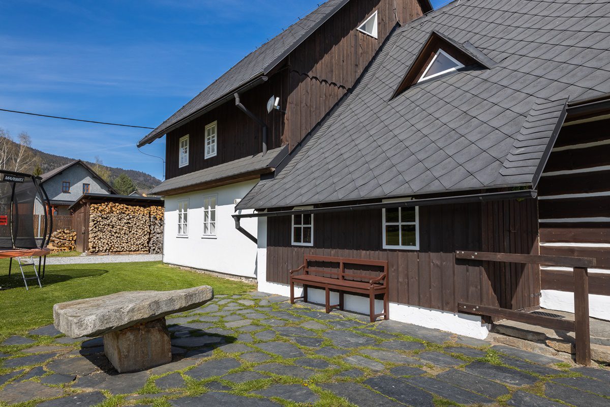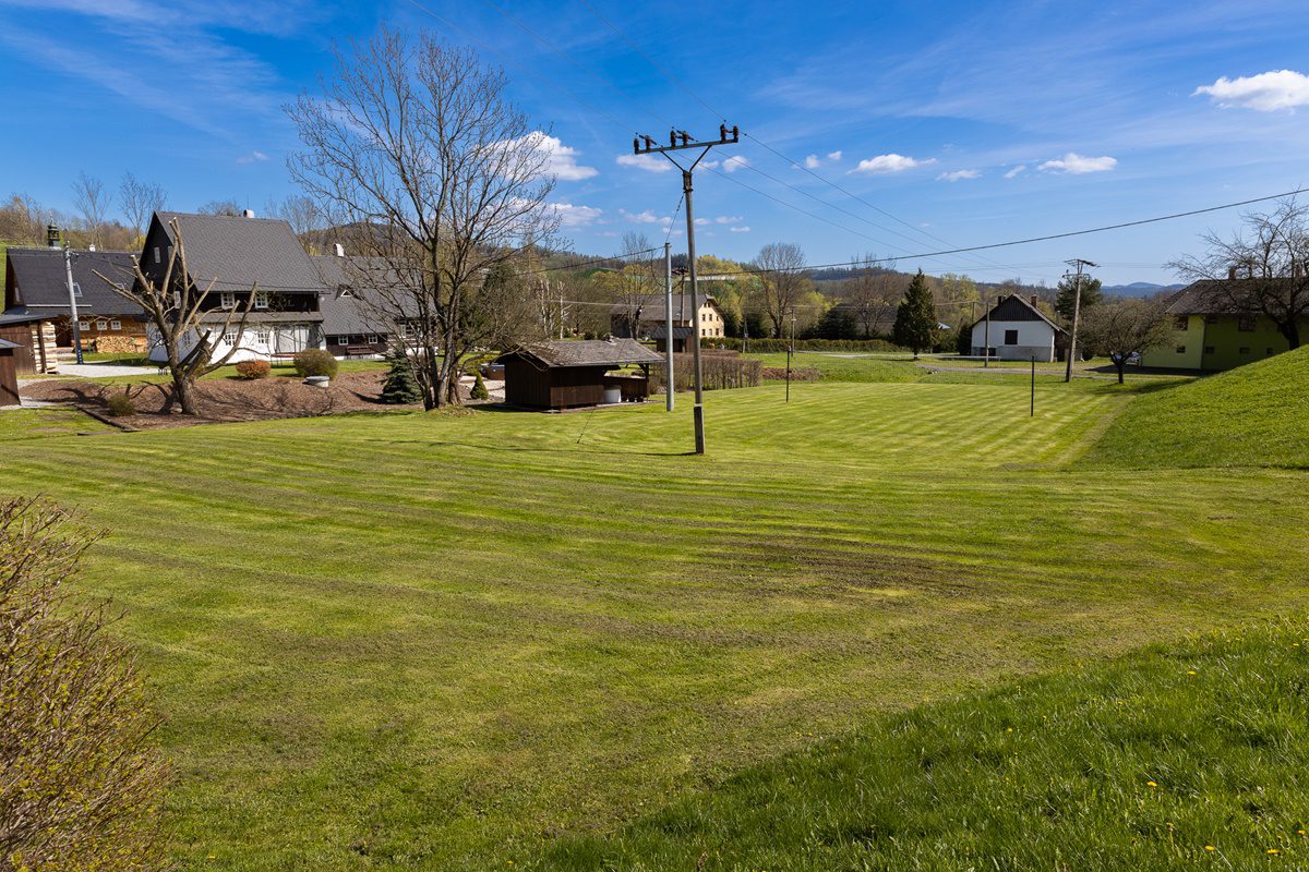 Chalupa o zastavěné ploše 131 m2 je zasazena v udržované zahradě, jež nabízí dokonalé soukromí a sportovní vyžití. Zahrada o celkové výměře 5.362 m2 má vlastní vjezd a nabízí až 8 soukromých parkovacích míst.