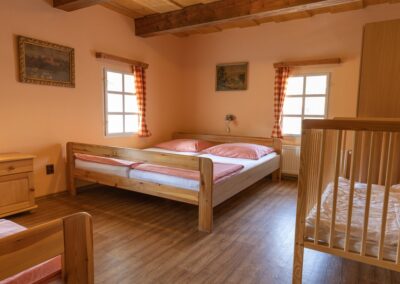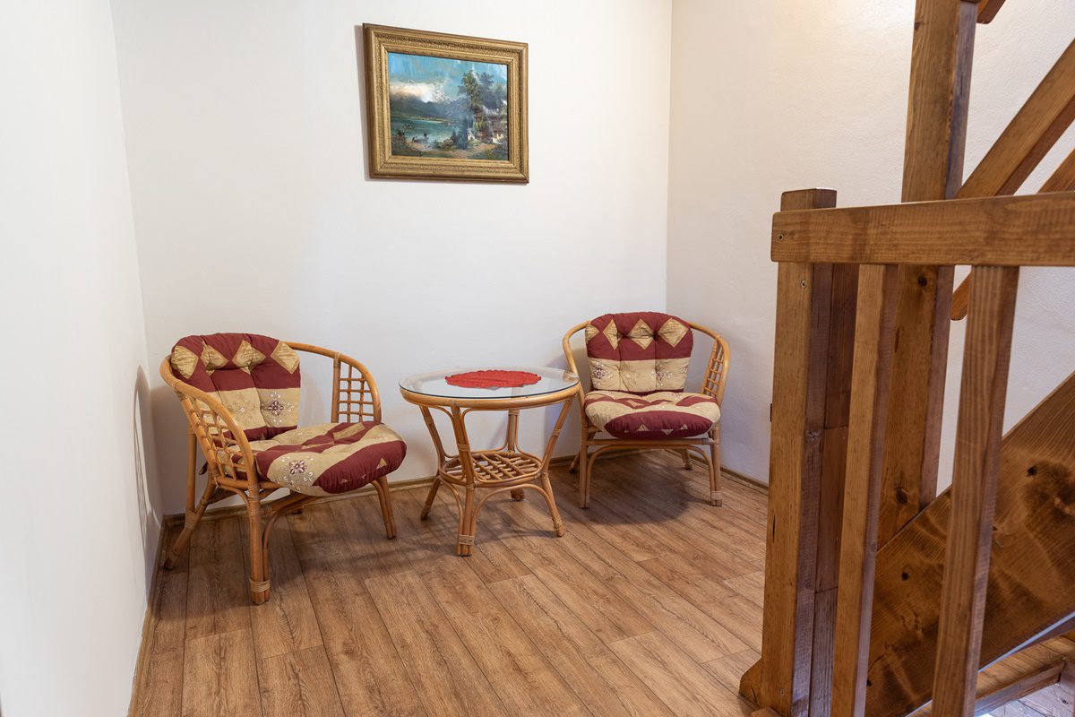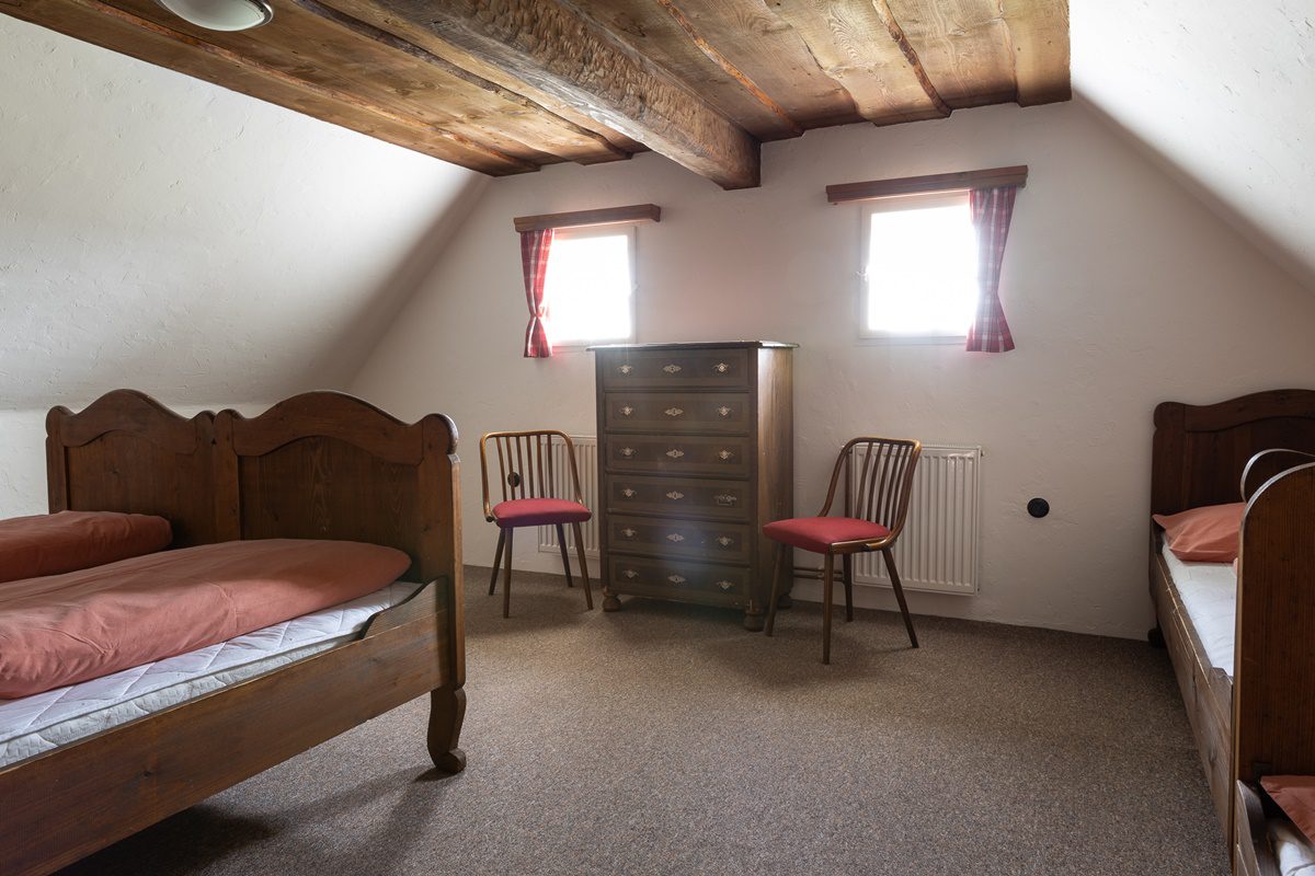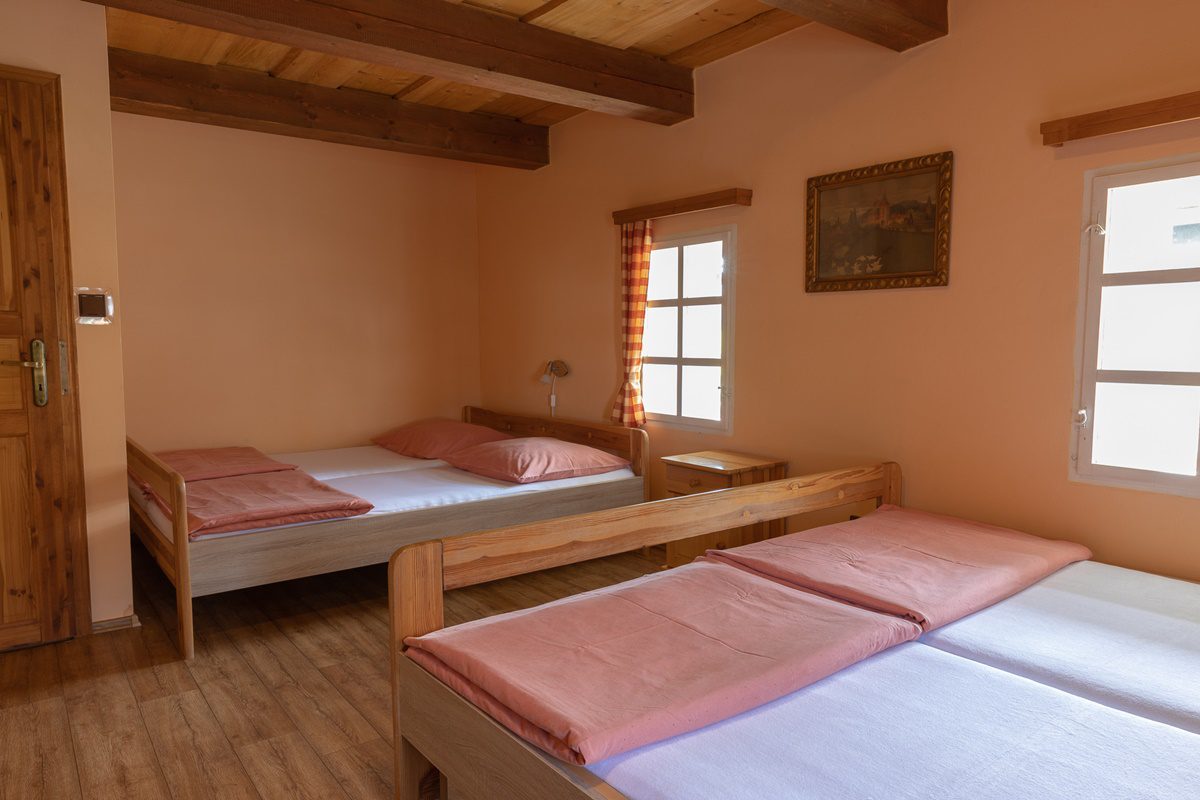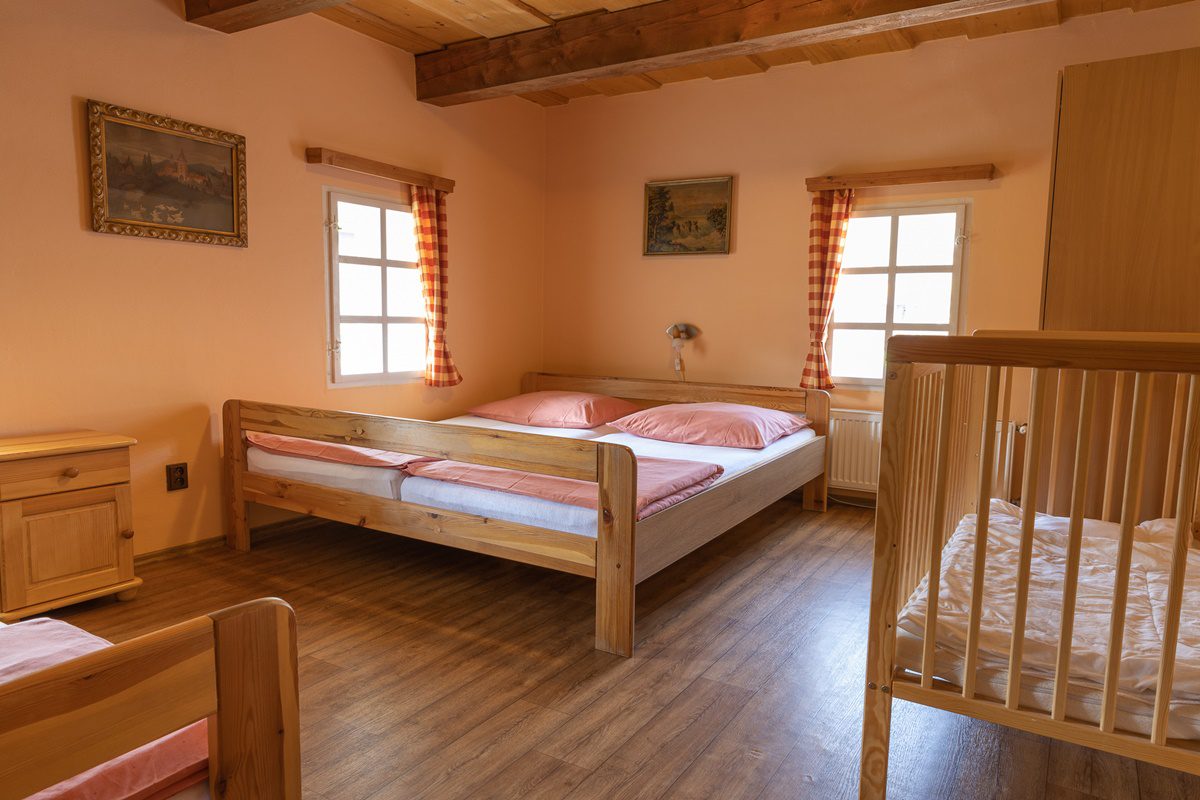 Patro – dva samostatné pokoje, které jsou kompletně vybaveny a nabízí až osm lůžek na spaní, na chodbičce je samostatné WC s umyvadlem a pračkou.