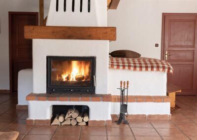 Vytápění objektu je primárně řešeno kachlovými kamny a krbem, který je napojený na ústřední topení. V centrální místnosti s krbem je i podlahové topení. K dispozici je samozřejmě i elektrokotel s připojením na ústřední topení, který lze ovládat dálkově. Dodávku teplé vody zajištují dva bojlery o objemu 200 l kombinace (topení+ elektřina). Dům má vlastní vrtanou studnu s čistící technologií a odpady jsou napojeny do jímky s pravidelným vývozem.