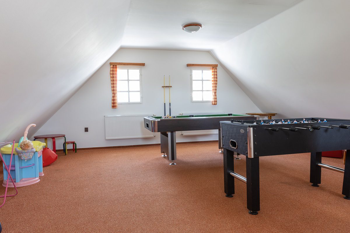 Podkroví – společenská místnost, herna pro děti i dospěláky včetně bohatého vybavení