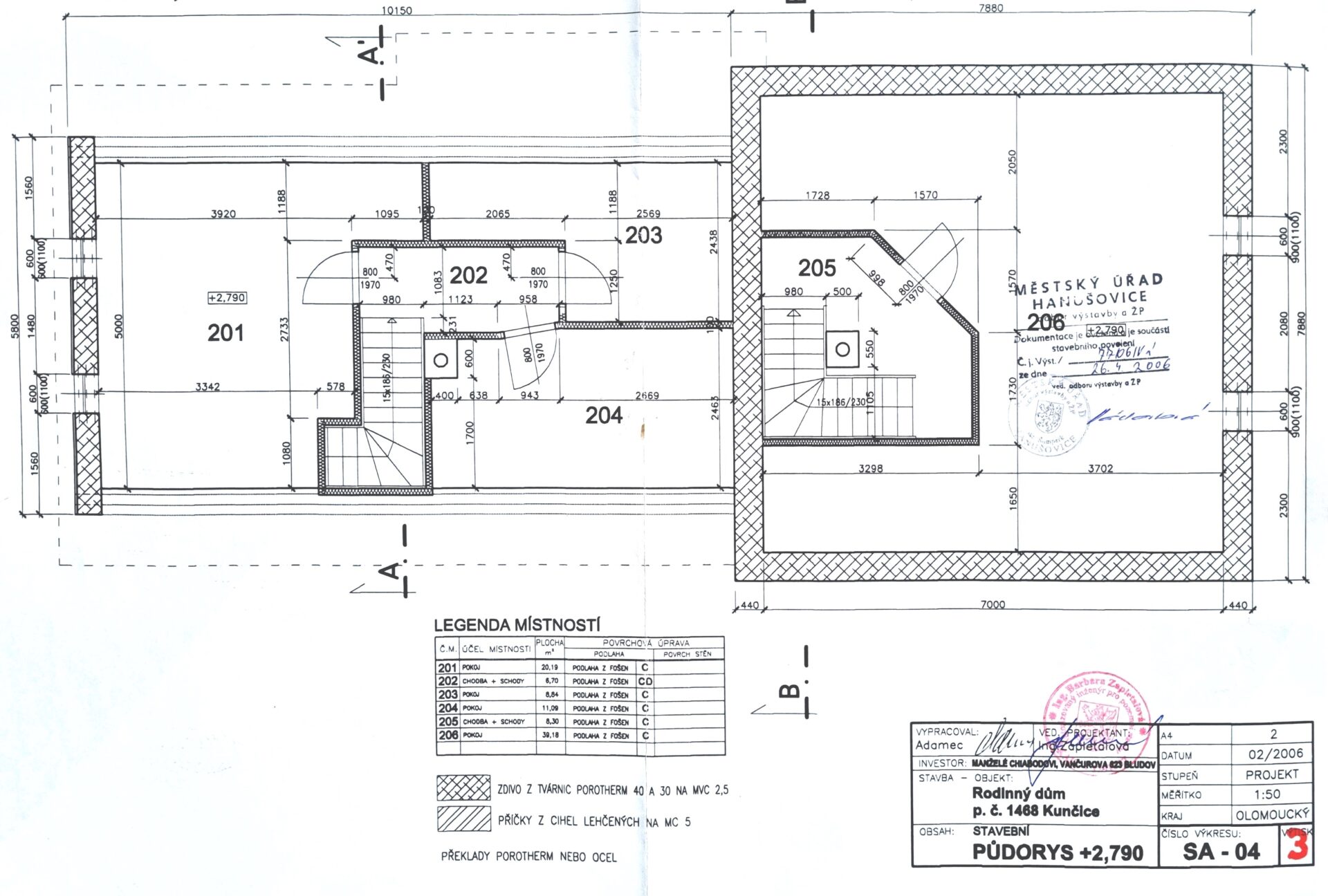Jde o patrovou zděnou stavbu s prkennými obklady, která je rozdělena do dvou částí. Veškeré okenní výplně jsou dřevěné a byly vyrobeny na zakázku. Podlahy v přízemí chalupy jsou betonové obloženy dlažbou a podlahy v patře jsou dřevěné prkenné. Celá střecha je pokryta moderní krytinou CAPACCO. Chalupa je rozdělena na přední a zadní část. Obě části jsou spojeny chodbou, do které se vstupuje z verandy. Na chodbě je umístěna el. chladnička s mrazákem, vstup na samostatné WC a další vstup do koupelny se sprchovacím koutem, umyvadlem a odděleným WC. Z chodby se vstupuje vlevo do zadní části objektu a vpravo do přední části.