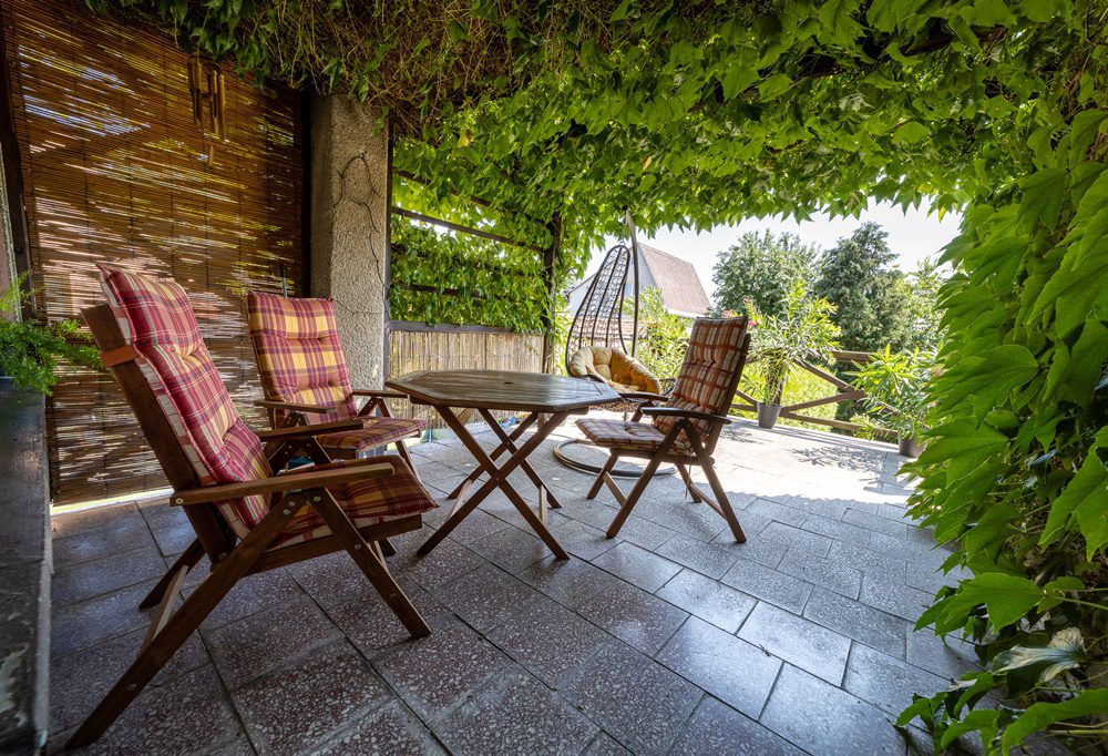 Na uzavřené zahradě, která nabízí naprostý relax a soukromí, můžete ochutnat sezónní ovoce z vlastních stromů/jablko, třešeň, višeň nebo ryngle/.