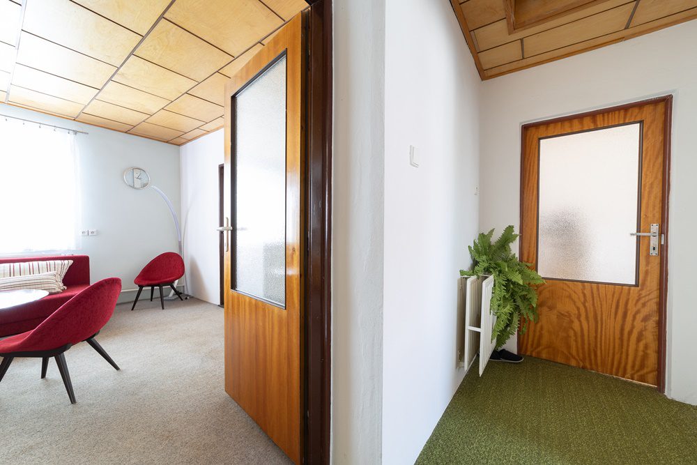 Druhé nadzemní podlaží, do kterého je přístup opět ze schodiště je tvořeno třemi samostatnými pokoji, které nejsou rekonstruovány. Z nejmenšího pokoje lze vybudovat kuchyňku a následně by tedy šlo dům rozdělit na dvě samostatné bytové jednotky. K dispozici je také další koupelna, která byla rekonstruována/2016/ a je rovněž osazena moderními zařizovacími předměty a sprchovým koutem.