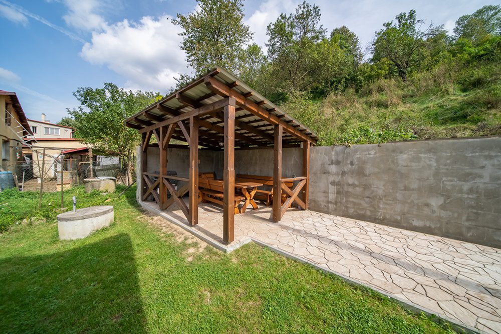 Dům je napojen na obecní vodovod, kanalizaci a přípojku el. energie. Užitkovou vodu lze čerpat z vlastní studny. K dispozici je také plynová přípojka, která je umístěna v přední opěrné zdi. Součástí vybavení je i technická stavba /zahradní domek/ a pergola s posezením za domem. Příjezd k domu je vydlážděn kamennou dlažbou a nabízí parkování pro 3 automobily.